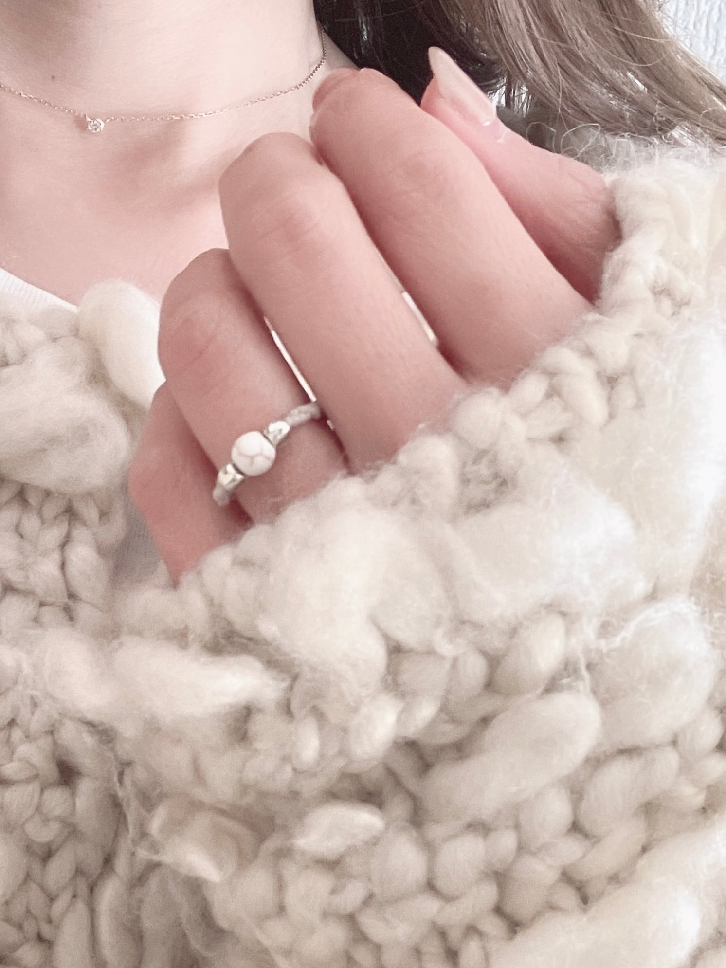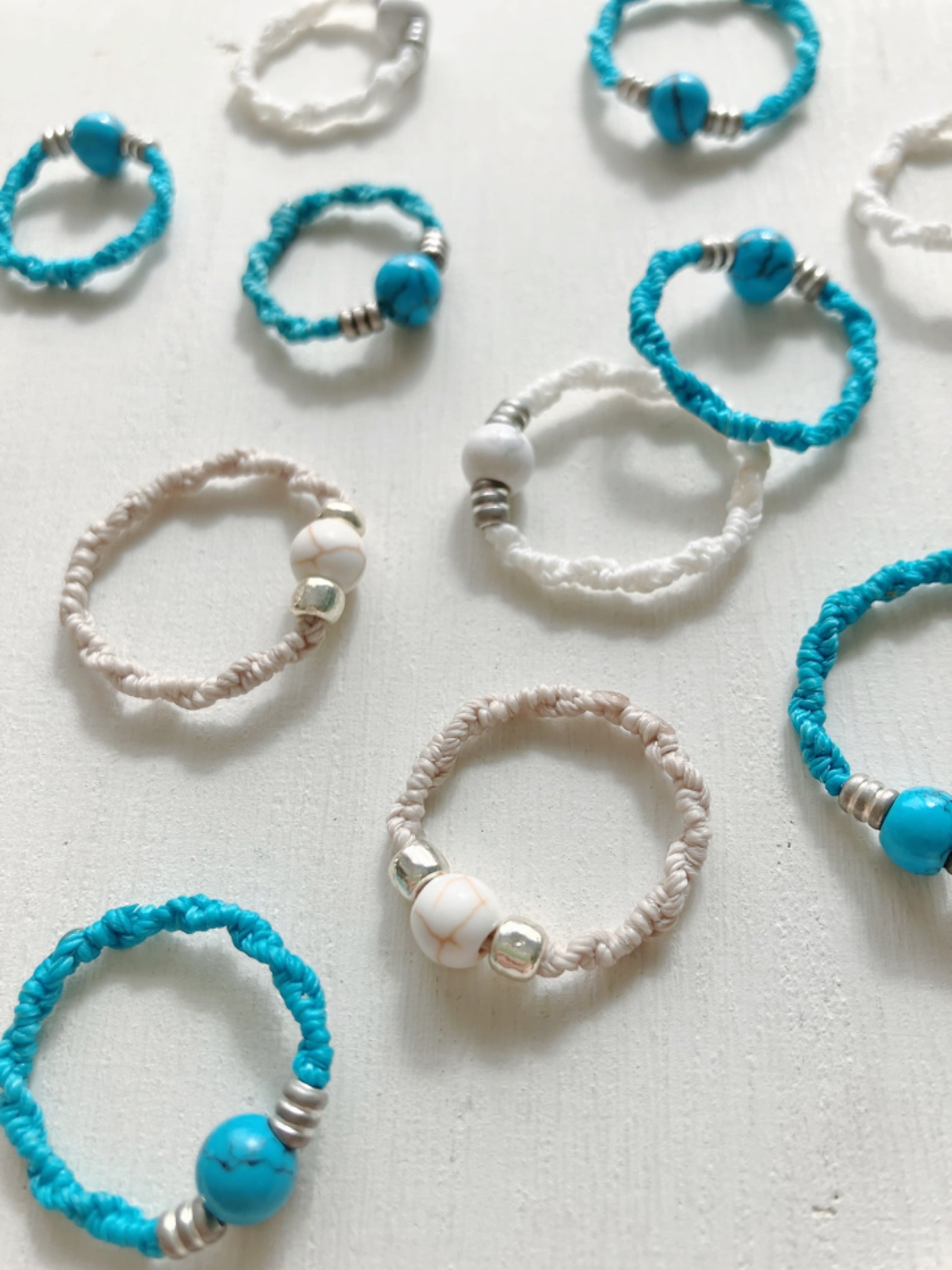 ターコイズの石ビーズがかわいいマクラメ編みのカジュアルリング✨